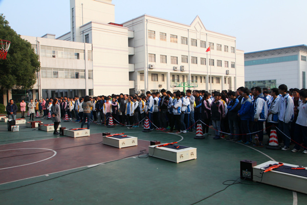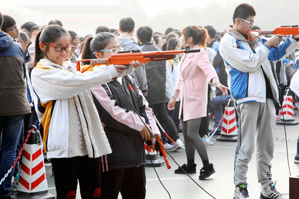 最后,全体学生在操场饶有兴致地参加了电子射击比赛。