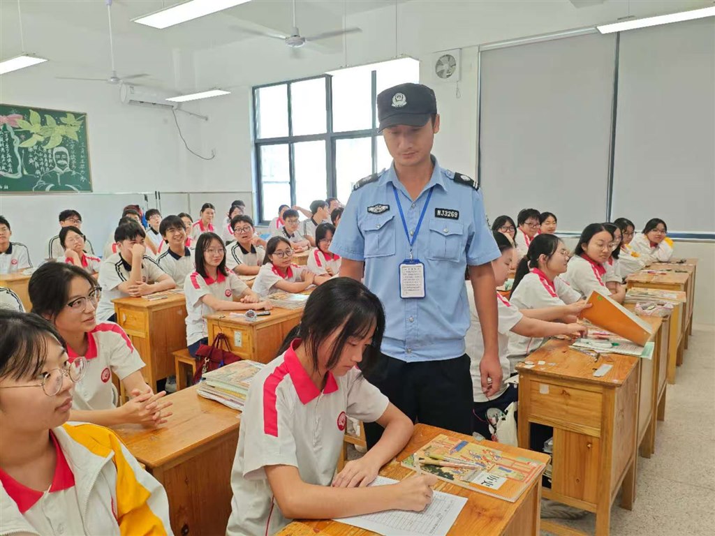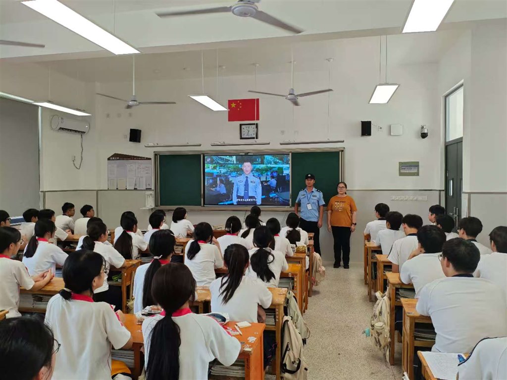 洛阳镇派出所民警,进班组织宣讲。活动聚焦学生和家长普遍关注的宪法、未成年人保护法、预防未成年人犯罪法、未成年人网络保护条例等法律法规,通过法治情景剧演绎、深入反诈一线、法官以案释法等形式,带领中学生沉浸式学法。